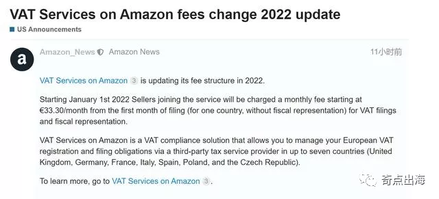 一、亚马逊增值税服务费用更新,将从第一个月开始收费