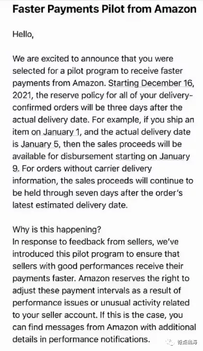 二、重磅!亚马逊将回款降至3天!更快支付试点已经开始!